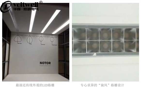 辦公室照明細(xì)分市場(chǎng)的產(chǎn)品類型,有著很明顯的兩極分化趨勢(shì)。針對(duì)中端和低端需求的產(chǎn)品,以面板燈和格柵燈為主,效果追求滿足標(biāo)準(zhǔn)的均勻照明。產(chǎn)品差異性不明顯,但是局部細(xì)節(jié)卻能顯示出“求異”的設(shè)計(jì)精神。同樣是LED格柵燈,在細(xì)節(jié)設(shè)計(jì)方面各大品牌卻各顯特色。