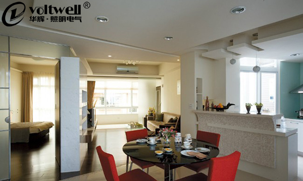 餐廳一般距離廚房較近,且有飯菜的熱氣,油煙相對(duì)較大,為保持潔凈,餐廳燈需要經(jīng)常清洗,因此宜選擇燈罩光潔的led吸頂燈。我想大部分朋友應(yīng)該都有更換燈泡的經(jīng)歷;踩著桌子,踏著椅子,抬高雙臂至屋頂。整個(gè)過(guò)程下來(lái),胳膊脖子那叫一個(gè)酸呀,累啊。所以拆洗燈罩的方便性還是要考慮的。另外餐廳燈的光線還要使飯菜看起來(lái)色香味俱全,這樣才能增進(jìn)食欲,因此選擇15-20W的led吸頂燈是比較合適的。