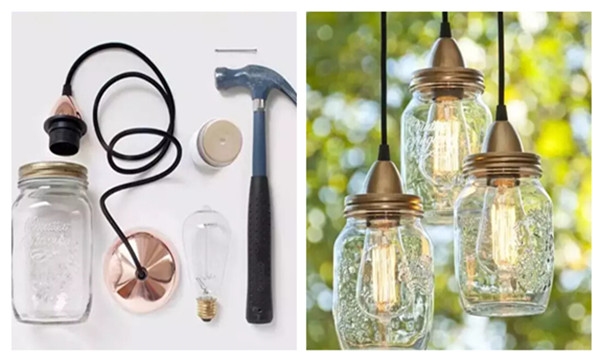用果醬瓶做成的設計感吊燈