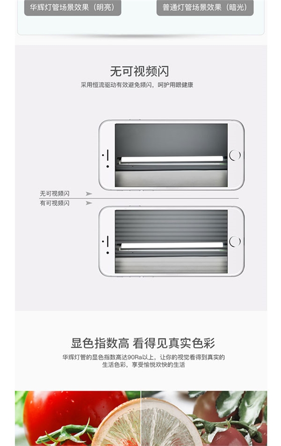 2、LED日光燈屬于綠色環(huán)保產(chǎn)品,具有半導體電光源,它發(fā)出的光線不刺眼且溫和, 6000K的冷光源給人的視覺感受有著清涼的感受,有利于集中精神,增加效率。LED恒流工作,有效消除LED光衰,開啟時快,沒有閃爍,保護眼睛。
