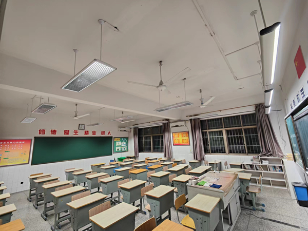 教室采用傳統的熒光燈管,教室里部分區域的光線偏暗,燈光照度不均勻,沒有設置黑板專用燈具。學生長期在照度不足的光環境下學習,極易導致視覺疲勞,不利于學生視力健康,嚴重影響學生的學習效率。