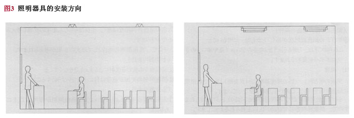 從學(xué)生角度看,應(yīng)減少耀眼程度、能清晰地看到黑板上的文字。因此,建議使用遮光角為24°的燈具。同時應(yīng)平行于黑板配置。(見圖3)