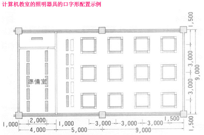 圖13所示為計算機(jī)教室中照明器具按口字形配置的示例。